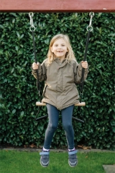 Ce trapèze combine l’expérience de balancement traditionnelle avec la possibilité d’exercices de gymnastique. Grâce à son design innovant, il offre davantage d’activités motrices et de plaisir. La barre de balançoire peut servir d’assise ou de barre de gymnastique, tandis que les poignées/anneaux de gymnastique permettent aux petits acrobates de découvrir de nouveaux mouvements. Convient aux débutants comme aux utilisateurs plus avancés.