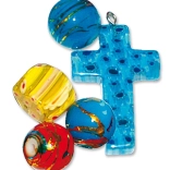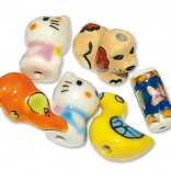 • Perles variées en verre et céramique de différentes formes (cœurs, croix, animaux, cylindres)
