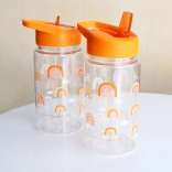 Bouteille pour enfants transparente avec un motif joyeux d’arc‑en‑ciel et une capacité de 450 ml, idéale pour la maternelle et les excursions. Grâce au matériau Tritan, elle est légère et résistante ; le couvercle avec paille garantit une étanchéité anti-fuite et une boisson confortable. Complète parfaitement l’ensemble au même design – bouteille, sac à dos et boîte à goûter.