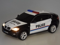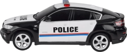 Ce modèle reproduit fidèlement une véritable voiture de police BMW X6 avec des détails authentiques, y compris l'insigne de la police et la bande lumineuse sur le toit.