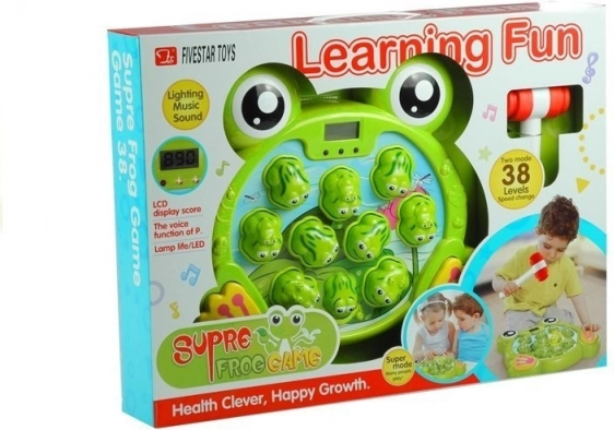 Les grenouilles lumineuses offriront un super amusement aux enfants de tout âge – le jeu comprend plusieurs manches qui augmentent la fréquence des éléments lumineux, ce qui favorise un esprit de compétition sain – avec les parents comme avec les camarades. Le mode éducatif comprend 26 niveaux, chacun durant 30 secondes. Le super mode comprend 12 niveaux, beaucoup plus difficiles – une stimulation plus élevée signifie encore plus de fun.