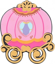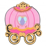 Un carrosse décoratif en papier rose avec des détails ajourés, parfait pour une fête féerique ou un projet créatif.