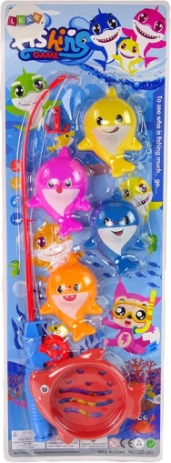 .La fabrication se distingue par un grand soin et une qualité d’exécution, réalisée dans un matériau sans danger pour la santé. Le set comprend 4 petits poissons colorés, une canne à pêche et une épuisette. La canne est équipée d’un moulinet permettant d’abaisser ou de remonter la ligne, avec un hameçon au bout pour attraper les poissons.