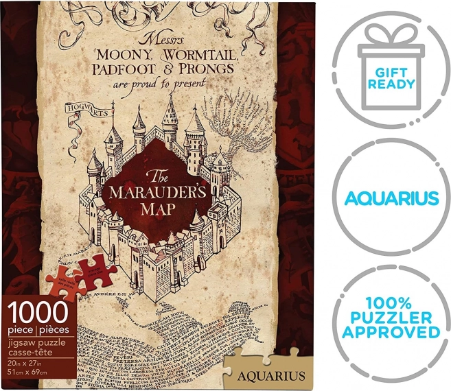 Profitez d’une aventure magique avec les puzzles sous licence AQUARIUS inspirés de HARRY POTTER. Ce set au motif du Plan de la Maraude offre 1000 pièces et, une fois assemblé, forme une image de 51 × 69 cm – idéal pour les fans des films et les collectionneurs de puzzles de qualité.