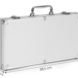 L'ensemble est livré dans une mallette en métal robuste, ce qui le rend idéal pour le transport. La mallette est verrouillable (contient deux clés), ce qui empêche toute ouverture accidentelle et dispersion des éléments de jeu.