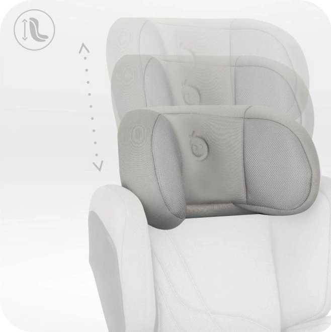 Appui-tête profond, moelleux et réglable en hauteur sur 9 niveaux, protège la tête et le cou, absorbe l’énergie d’un impact et grandit avec l’enfant.