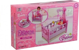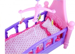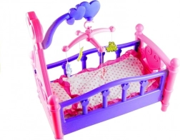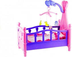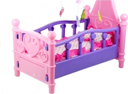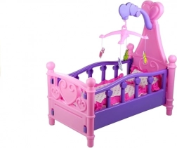Ce berceau pour poupées au style soigné rappelle fidèlement un véritable lit d’enfant. La finition rose‑violet avec cœurs et ornements est complétée par un mobile avec petits animaux suspendus qui aide la poupée à s’endormir facilement. La literie moelleuse assortie au design du berceau est incluse.