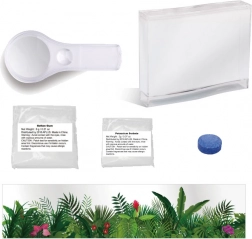 Le kit contient tout ce dont vous avez besoin pour commencer votre aventure: aquarium, gel nutritif, loupe, autocollant avec des plantes et manuel. Recommandé pour les enfants à partir de 8 ans.