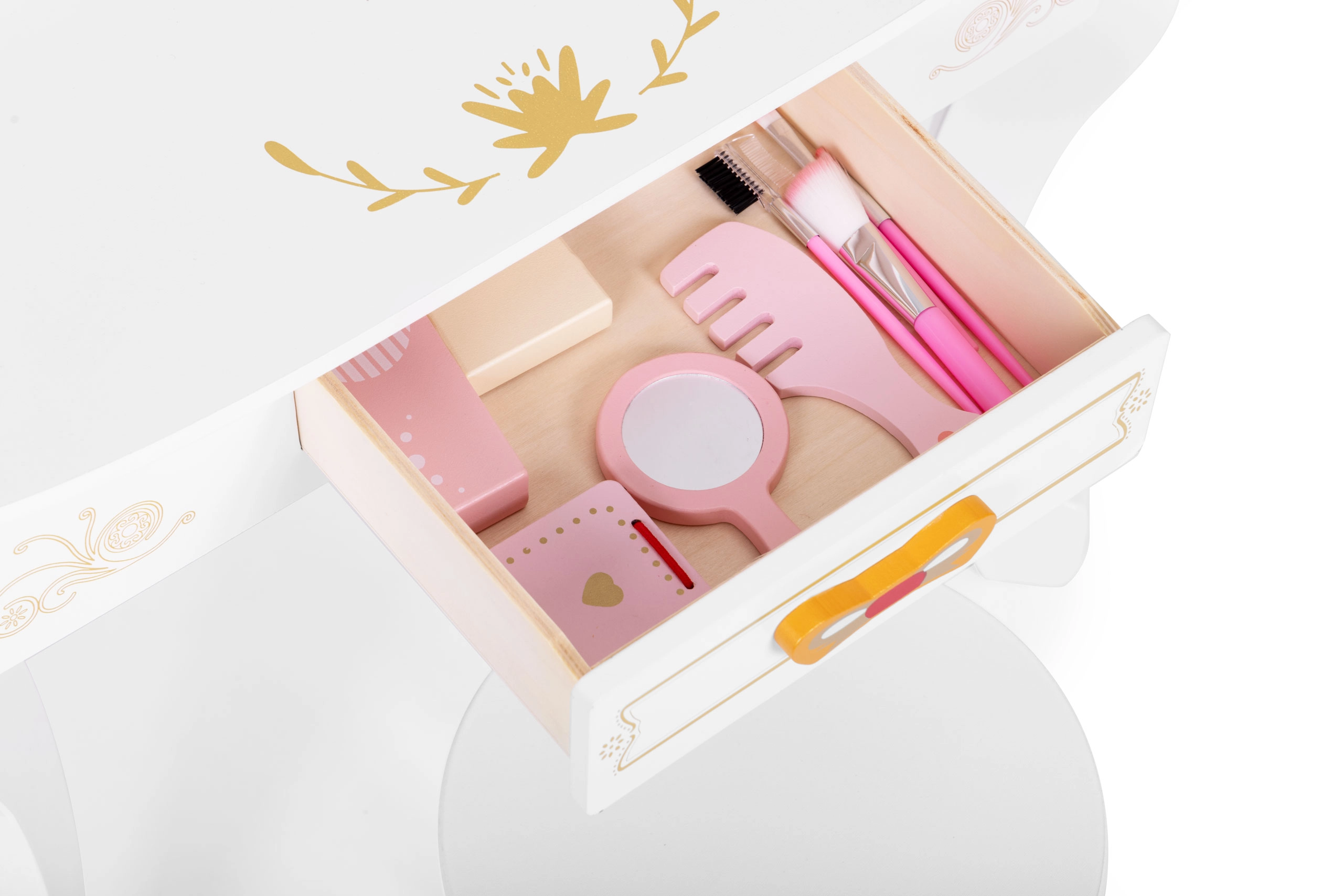 Grande coiffeuse en bois pour enfants avec miroir pour filles accessoires roses ECOTOYS
