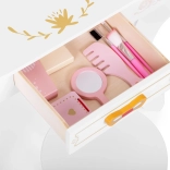 Elle comprend de nombreux accessoires qui feront plaisir à chaque petite demoiselle. L’ensemble est conçu pour que l’enfant puisse jouer le rôle de maquilleuse, de mannequin ou de princesse. Grâce au jeu, l’enfant développe sa motricité fine et son imagination et a l’occasion d’apprendre les bases du maquillage.