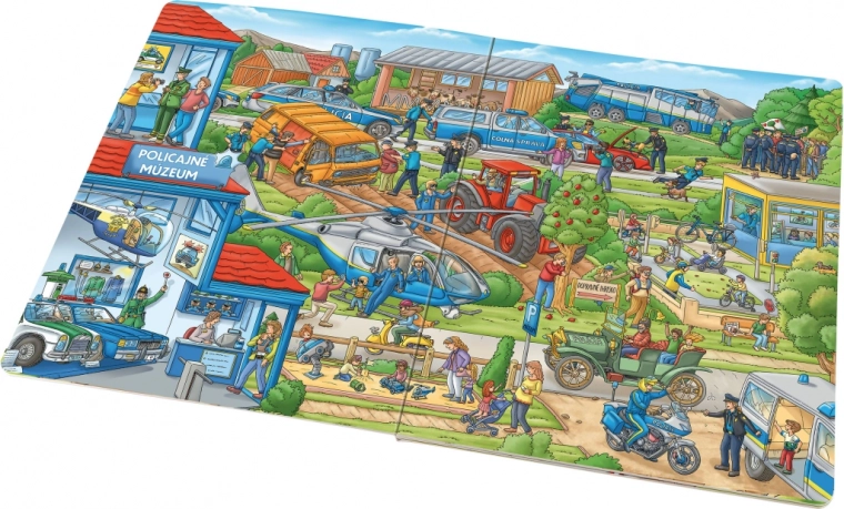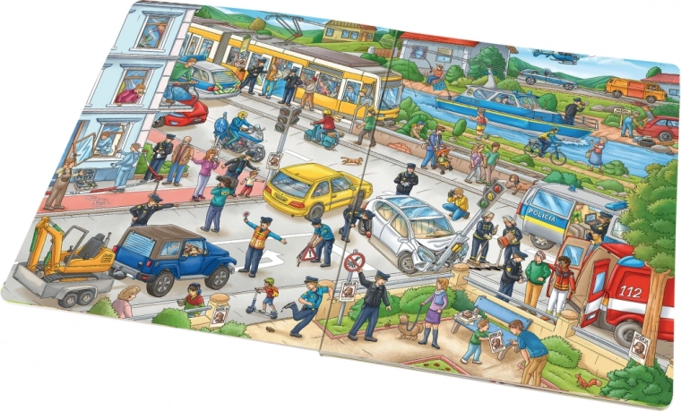Ce grand livre guide les enfants à travers une journée mouvementée au commissariat – de la traque des voleurs de bijoux au traitement des décharges sauvages, jusqu’à la recherche d’un chien perdu. Grâce à des illustrations riches et à des textes clairs, les jeunes lecteurs profitent d’histoires qui développent le sens de l’observation, le vocabulaire et le raisonnement logique.