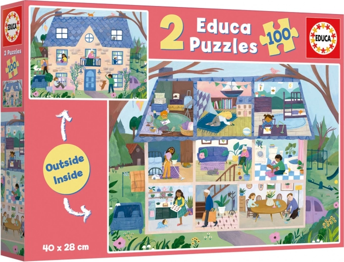 Profitez d’un moment ludique pour enfants et parents avec ce double coffret de puzzles de la marque EDUCA. Chaque puzzle comporte 100 pièces et une fois assemblé mesure environ 40 × 28 cm. Le thème « Outside, Inside maison » fait découvrir aux enfants la vie dans la maison, vue de l’extérieur et de l’intérieur et favorise le développement de l’imagination, de la concentration et de la motricité fine.