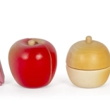 Grand set d’aliments avec couteau en bois, idéal pour toute cuisine d’enfant. Il contient des fruits et légumes réalistes, reliés par du velcro, qui peuvent être facilement « découpés ». Le set favorise le jeu créatif et apprend aux enfants la responsabilité envers l’environnement.