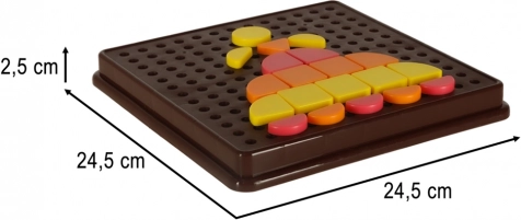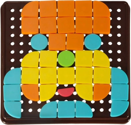 Ce puzzle mosaïque offre aux enfants des possibilités de création infinies. Les pièces géométriques colorées se fixent sur un plateau perforé et les enfants peuvent créer leurs propres images ou s’inspirer des cartes fournies. Le jeu développe naturellement la coordination œil-main, la perception visuelle et la capacité à distinguer les couleurs et les formes.