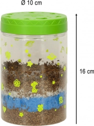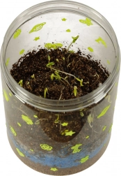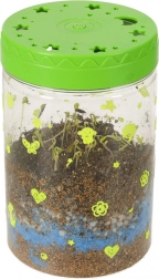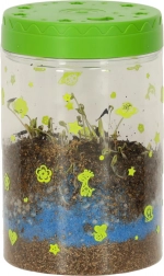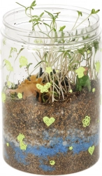 Le récipient en plastique transparent avec des ouvertures de ventilation est idéal pour planter les graines fournies. Le kit comprend de la terre et des pierres colorées que les enfants disposent selon les instructions. Les LED dans le couvercle du terrarium soutiennent la croissance des plantes tout en offrant un éclairage nocturne doux.