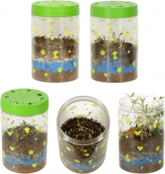 Les enfants deviennent ainsi de petits jardiniers, qui arrosent quotidiennement et surveillent la croissance de leurs plantes, apprenant ainsi les principes fondamentaux des soins à la nature. Le kit comprend trois dinosaures qui complètent ce jardin d'enfants, contribuant à l'enseignement sur le passé ancien de la Terre.