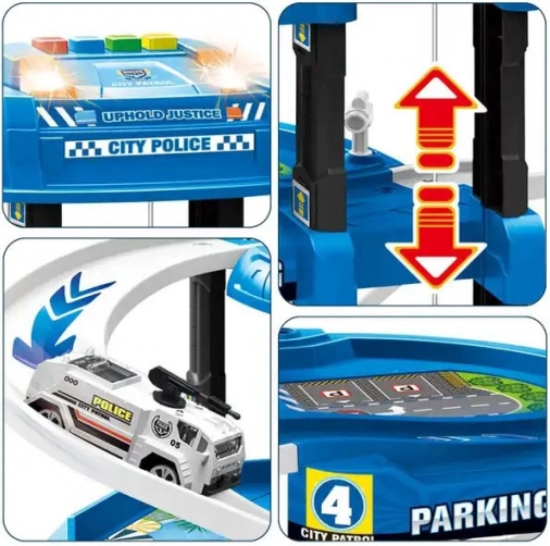 Set de stationnement de police XXL + tapis de jeu ville, 82 pièces