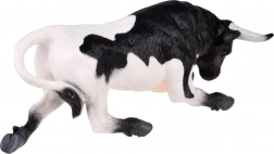 Figurine anatomiquement précise d'un taureau noir et blanc avec des détails réalistes, y compris une posture marquée et la texture de la peau, est fabriquée à partir de matériaux de haute qualité. Elle captive les enfants et stimule leur créativité.