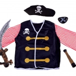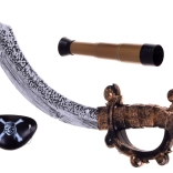 - chapeau de pirate, chemise, épée, longue-vue (télescopique), cache-œil