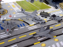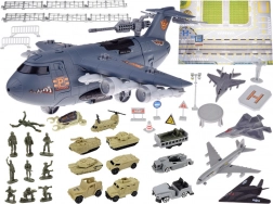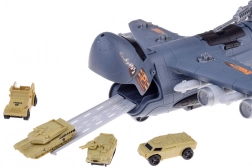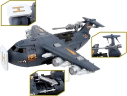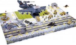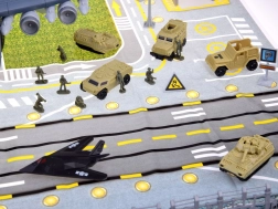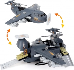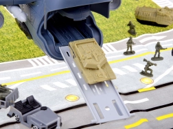Grande base aérienne militaire avec avions pour les amateurs de jeux d’avions, offrant des heures de divertissement stratégique. L’ensemble est conçu avec soin et de fins détails militaires, pensé pour les jeunes stratèges, conducteurs et pilotes en herbe. Le grand avion militaire dispose de nombreuses fonctionnalités qui occuperont le jeune pilote pendant des heures. L’avion possède un cockpit ouvrant pour le pilote, une rampe coulissante, une partie arrière ouvrante vers la soute, avec un espace de chargement. Ce véhicule aérien militaire est équipé d’un grand nombre de canons et de roquettes. En ouvrant le panneau situé dans la partie supérieure de l’avion, il est possible de déployer un canon. Des armes sont également dissimulées dans les ailes de l’appareil et peuvent être placées sur le dessus. Le set est fourni avec un tapis comportant de nombreuses voies et routes, et sert de terrain pour les véhicules militaires, captivant tout jeune fan de jeux militaires pendant des heures.