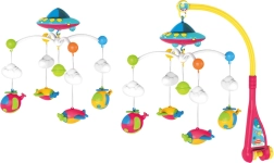 Le mobile en forme d’UFO apporte un style moderne et attrayant à tout berceau. Avec ses avions et hélicoptères suspendus qui tournent doucement, il favorise les compétences visuelles et motrices de l’enfant. Il est équipé d’un projecteur pour diffuser de magnifiques effets lumineux qui attirent l’attention et favorisent la détente.