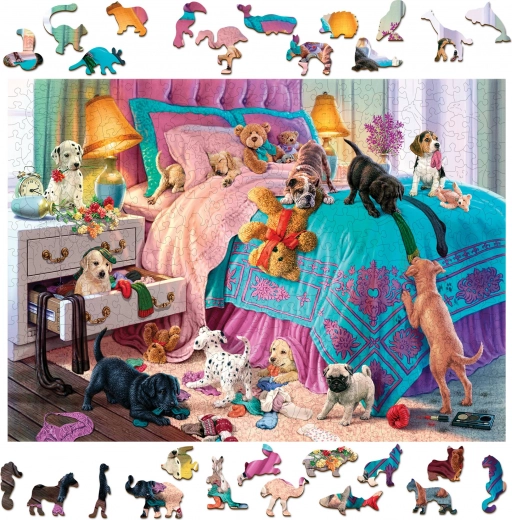 Les puzzles en bois WOODEN CITY Chiots espiègles apportent du plaisir aux enfants comme aux adultes. La forme originale des pièces en silhouettes d’animaux, de bâtiments et d’objets donne une nouvelle dimension à l’assemblage, et certaines pièces peuvent même servir de petites figurines indépendantes. Grâce aux détails accentués au laser, le motif et la qualité de fabrication ressortent pleinement.