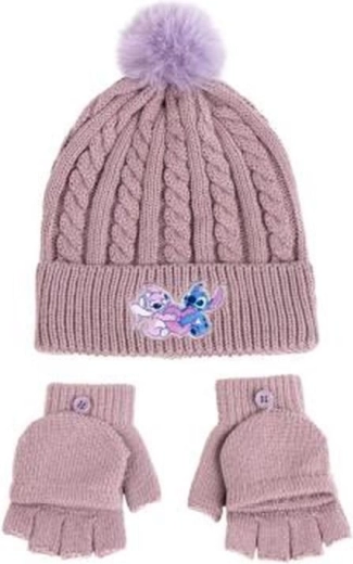 Ensemble d'hiver chaud pour enfants STITCH avec bonnet et gants 2‑en‑1 pour temps froid. En maille tricotée douce, avec pompon moelleux et motif STITCH sous licence. Idéal pour enfants de 5–8 ans.