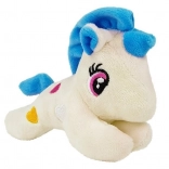 La licorne est douce et câline, avec des petits cœurs colorés sur les côtés.