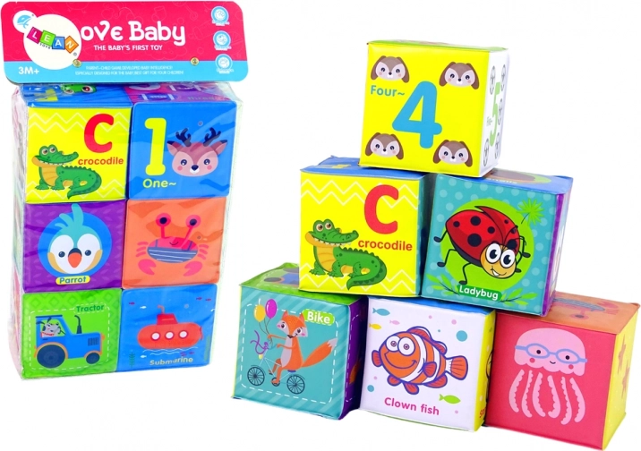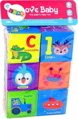 Découvrez le jouet idéal pour les premières explorations. Doux, agréables au toucher et adaptés aux petites mains, ces cubes aident à entraîner la préhension, la coordination œil-main et la reconnaissance des formes et des couleurs. Grâce aux illustrations d’animaux, aux chiffres et aux lettres avec noms en anglais, les enfants enrichissent naturellement leur vocabulaire et apprennent en s’amusant.