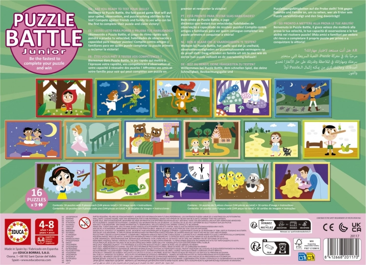 Vivez une bataille de puzzles palpitante avec la gamme Educa – assemblage rapide, amusement et apprentissage réunis. Le set comprend 16 mini puzzles de 9 pièces et 16 cartes modèles, idéal pour se mesurer entre amis ou en famille. Favorise la coordination œil–main, la rapidité, la patience et les capacités d’observation.