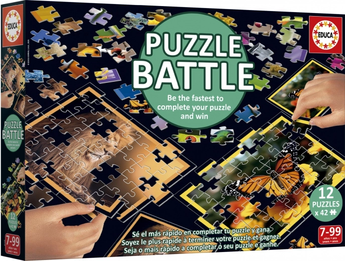 Découvrez le concept unique de bataille de puzzles de la marque EDUCA. La boîte contient 12 mini puzzles individuels, chacun de 42 pièces, ainsi que 12 cartes modèles. Idéal pour de courtes parties compétitives comme pour de longs après-midis ludiques en famille.