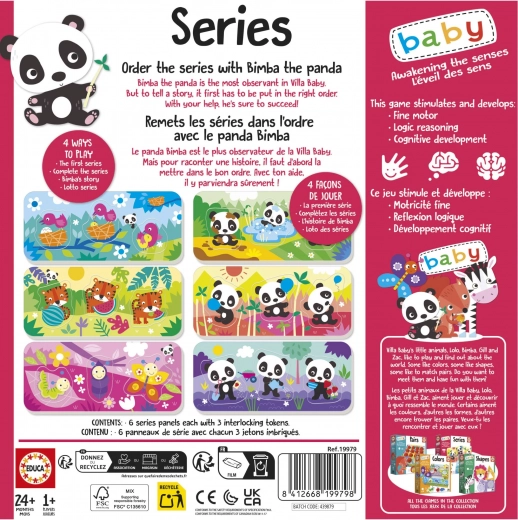 Un encastrement ludique et éducatif pour les tout-petits dès 24 mois de la marque EDUCA. Le coffret contient 6 puzzles simples de 3 pièces avec le motif de la sympathique panda Bimba et de ses amis. Il favorise la motricité fine, l’attention, la curiosité et l’imagination des enfants. De grandes pièces solides facilitent la prise en main et l’assemblage, l’apprentissage se fait de manière ludique.