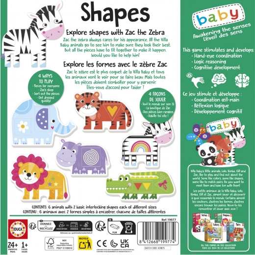EDUCA baby encastrement explore les formes avec le zèbre Zak (6 × 2 pièces)