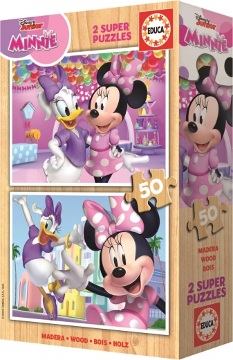 Ce coffret offre une double dose de divertissement : vous trouverez dans la boîte 2 puzzles de 50 pièces, chacun ayant les mêmes dimensions une fois assemblé, env. 26 × 18 cm. La conception en bois est naturelle, solide et durable, ce qui la rend parfaite pour des assemblages répétés. Les motifs attrayants des personnages populaires MINNIE et DAISY encouragent les enfants à jouer encore et encore.