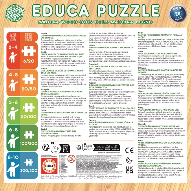 Grâce aux grandes pièces, les puzzles sont faciles à manipuler même pour les plus jeunes. La construction en bois robuste et les couleurs vives garantissent une utilisation durable et un aspect attrayant. Chaque puzzle assemblé mesure environ 26 × 18 cm, idéal sur une table ou un tapis pour enfants.