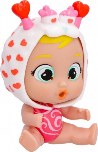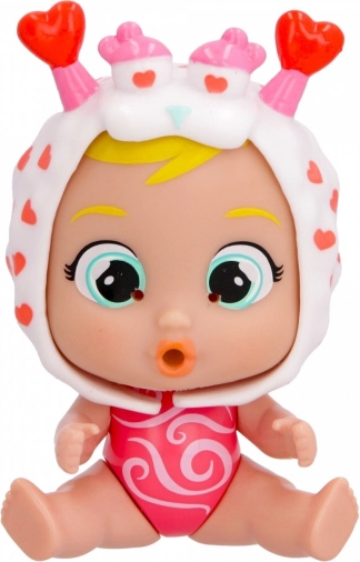 - pleure des larmes colorées lorsqu’on appuie sur le ventre