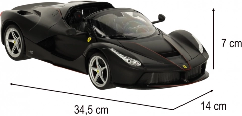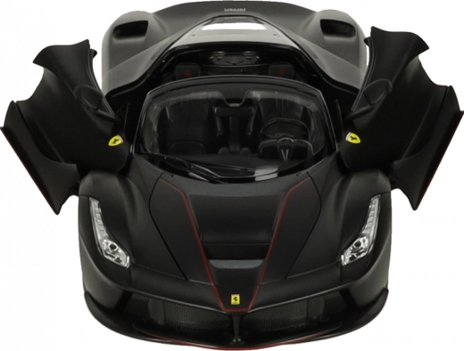 Cette fidèle réplique de la FERRARI LaFerrari Aperta séduit par les détails précis de la carrosserie, ses roues sport et des proportions authentiques. La finition noire avec les emblèmes de la marque souligne l’allure exclusive de la supercar.