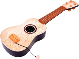 Cette guitare-jouet est conçue pour les petits musiciens qui aiment la musique et veulent essayer leurs premiers accords. Le corps en plastique à l’aspect bois naturel offre une impression professionnelle tout en restant léger et résistant pour les petites mains.