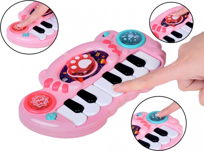 Ce jouet musical coloré associe amusement et apprentissage : les touches jouent des notes de base, des boutons spéciaux déclenchent des sons de percussions et des mélodies joyeuses, tandis que les petites lumières du panneau réagissent visuellement à chaque pression. Les enfants exercent l’ouïe, la vue et le toucher tout en développant leur motricité fine.
