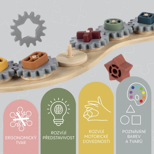 Découvrez la magie de l’apprentissage avec notre puzzle en bambou et silicone, qui allie amusement et découverte. Les engrenages colorés développent la motricité fine, la pensée logique et l’imagination de votre enfant. L’association de bambou naturel et de silicone sûr offre une expérience sensorielle agréable et encourage l’exploration naturelle du monde de la mécanique.