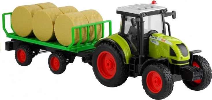 Découvrez un tracteur avec remorque richement détaillé, fidèle à la véritable machinerie agricole. Cabine transparente avec volant et siège, détails contrastés noirs et rouges et trois boutons sur le toit pour le son de démarrage du moteur, le klaxon et la marche arrière garantissant une expérience de jeu authentique.