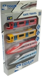 Ce set coloré apporte aux enfants l’univers du rail directement dans leur chambre. Il comprend quatre véhicules – deux locomotives modernes inspirées du Pendolino à grande vitesse (en combinaison rouge et gris-bleu) et deux wagons de métro (jaune et rouge). Chaque pièce est conçue avec un souci de détails réalistes tels que fenêtres, portes, pare-brise avec « essuie-glaces » et éléments de toit rappelant des pantographes.
