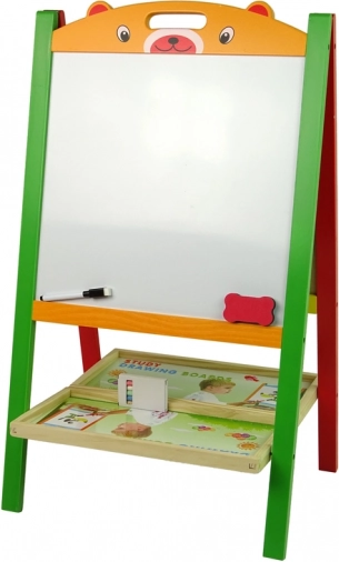 Ce tableau en bois double face 2-en-1 encourage les enfants à s’exprimer de façon créative et à apprendre dès le plus jeune âge. Sur la face blanche, ils peuvent écrire et dessiner avec un marqueur effaçable à sec, tandis que la face verte magnétique est idéale pour composer des mots avec des lettres et s’entraîner au calcul avec des chiffres et des signes. Le cadre stable et l’étagère/tiroir pratique gardent tout à portée de main.