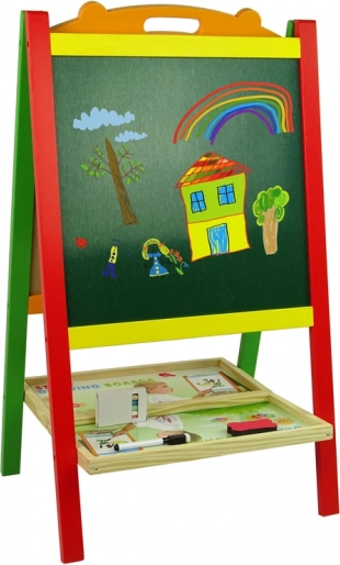 Un chevalet en bois sûr, solide et pliant permet de gagner de la place et d’assurer un usage confortable à la maison comme à l’école.