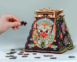 Casse-tête en bois Pyramide du Soleil est un casse-tête unique combinant puzzle et défis de jeux d'évasion. Un cadeau parfait et une décoration.