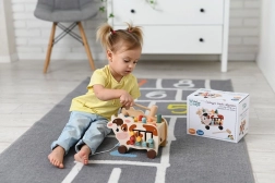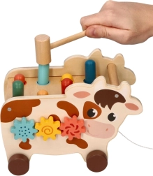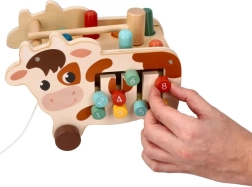 Cette vache en bois est un excellent choix pour un apprentissage ludique à la maison comme à la maternelle. Grâce à la combinaison des chevilles à marteler, des engrenages colorés et des activités numériques, les enfants exercent leur concentration, la coordination œil–main et les premiers calculs. Le jouet est mobile – il possède des roulettes et une ficelle pour le tirer, afin d’accompagner les enfants dans leurs découvertes.
