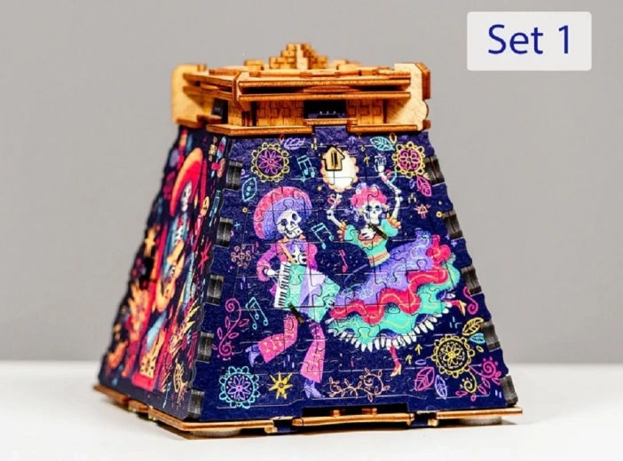 Transformez votre casse-tête iconique Pyramide du Soleil en un spectacle coloré grâce à l’extension thématique Jour des morts. Des pièces en bois découpées avec précision et une impression riche créent une nouvelle couche qui met en valeur le design de toute la pyramide et en fait une décoration hors du commun. L’extension est destinée exclusivement à l’apparence – elle n’intervient pas dans la solution du casse-tête d’origine.