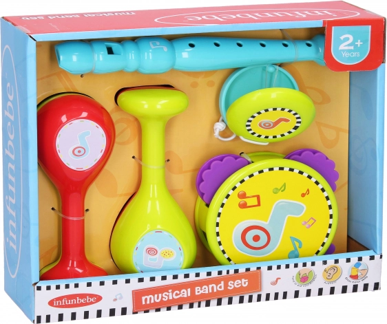 - Set complet de 5 instruments : maracas (2 pièces), harmonica, flûte, tambourin