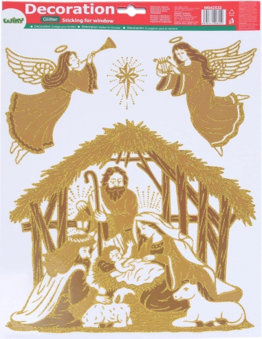 Décoration de fenêtre Crèche 41 × 29 cm pour une ambiance de Noël féerique. Application facile, 2 variantes. Idéale pour une déco festive rapide.