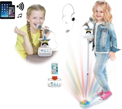 Avec cet ensemble karaoké Bluetooth, profitez d’un maximum de fun. Il comprend un module karaoké, un pied avec micro et un micro serre-tête qui assure un chant stable et confortable même en mouvement. Le panneau de commande est équipé d’un support pour téléphone mobile ou lecteur MP3, afin de suivre facilement les paroles ou les vidéos.